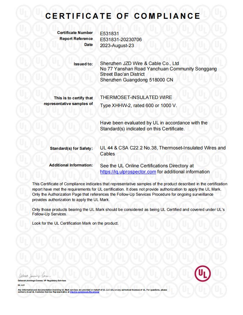 对于进口商、承包商和工程师而言,合规性不容妥协。JZD电缆的XHHW-2电线经过严格测试,确保符合以下标准: